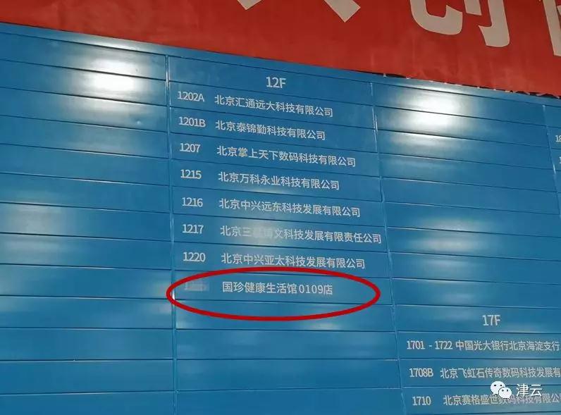 津云记者拨通了新时代健康集团官网客服热线,寻找销售国珍松花粉的实体店。工作人员提供了位于北京市海淀区中关村南大街甲6号铸诚大厦1102室的地址。