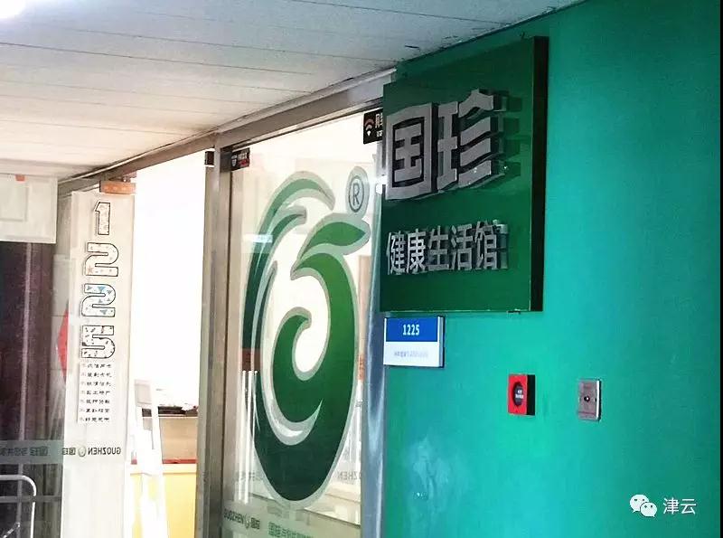 当根据地址找到这家店时,却发现门口贴着“店内装修暂停营业”的牌子。旁边另一块牌子上写着国珍健康生活馆,是由新时代健康集团授权的第169店。通过玻璃门看到,屋内的设施被搬空。