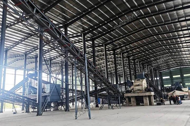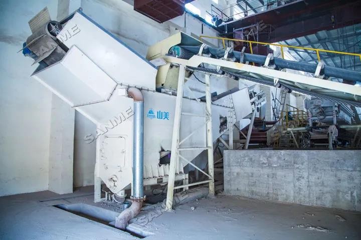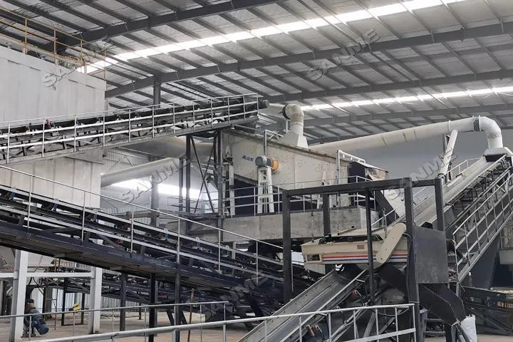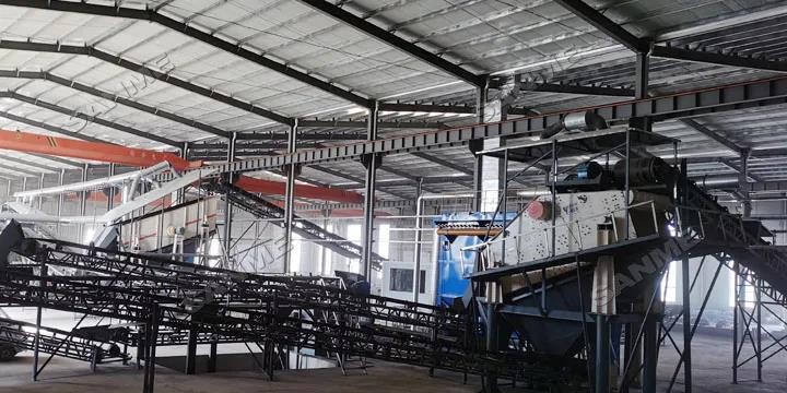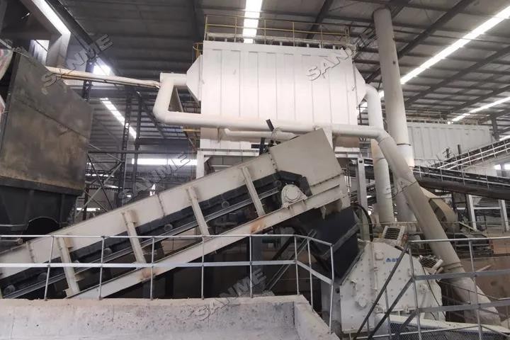 本项目于2019年投产,时处理量为120吨,由上海山美股份提供完整解决方案和全套破碎筛分设备。上海山美股份提供的核心处理设备包HC系列欧版反击式破碎机、重型筛分给料机、重型除土筛、强力风选机、悬挂式风选机和磁选机等。采用磁选+风选+风选三级分选流程,可有效去除轻物质、提升成品品质。