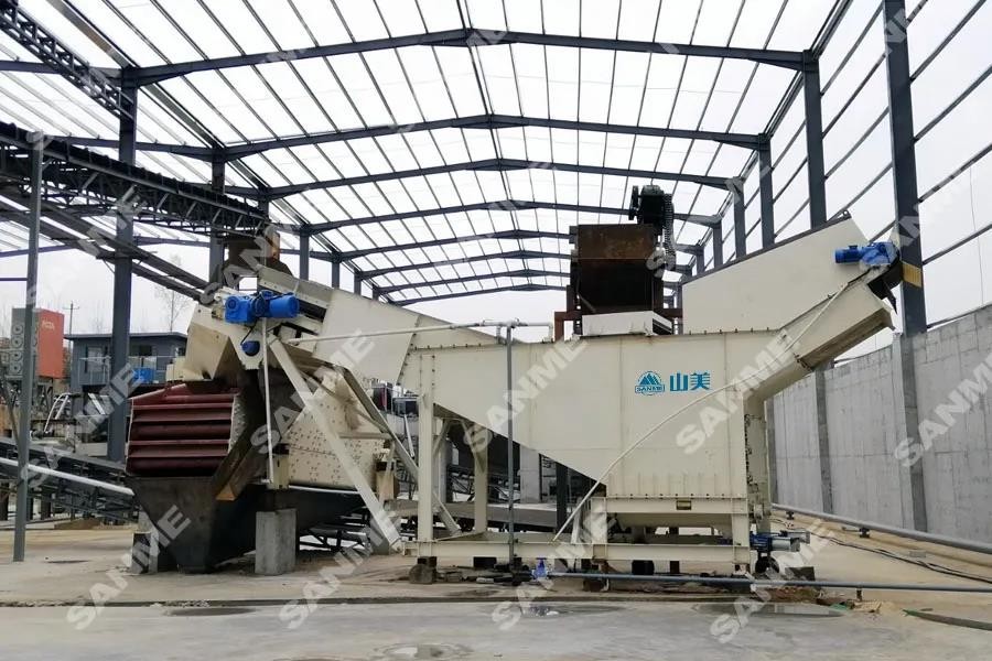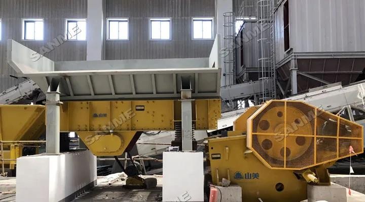本项目是上海山美股份承接的技术改造项目,处理为150吨/小时,在其原有设备基础上增加了山美股份新型反击式破碎机、除土筛和圆振动筛等。其中新型反击式破碎机可有效改善成品的粒形,除土筛可有效去除原料中的含土量,从而提升再生原材料的品质。
