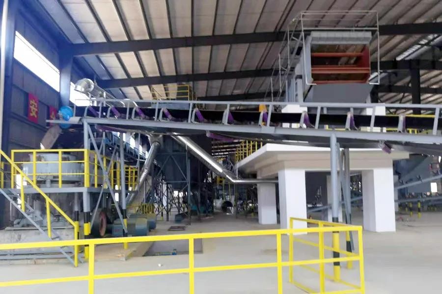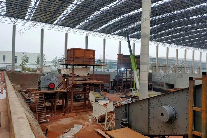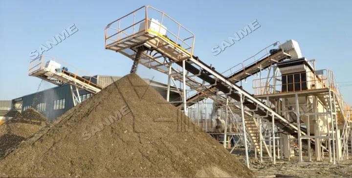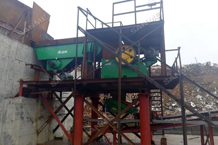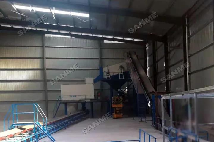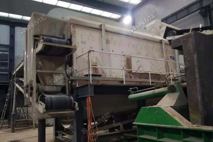 本项目于2019年投产,处理量为50吨/小时,是对当地含量很高的装修垃圾及生活垃圾混杂在一起的建筑固废进行分类,实现装修垃圾的资源化、无害化、减量化。本项目主要设备包括:高效振动给料机,特殊设计的反击式破碎机,SMW-5强力风选机,改进的重型筛分机,磁选机等其它专业配套的处理设备。