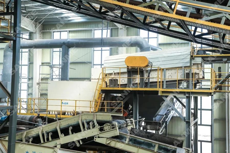项目年设计处理量为100万吨,由上海山美股份提供完整解决方案和全套建筑固废处理装备。项目采用“颚破+反击+反击”三段一闭路破碎筛分工艺和“磁选+风选+水选”三级分选流程,全封闭生产车间,可有效降噪、防尘,绿色环保。