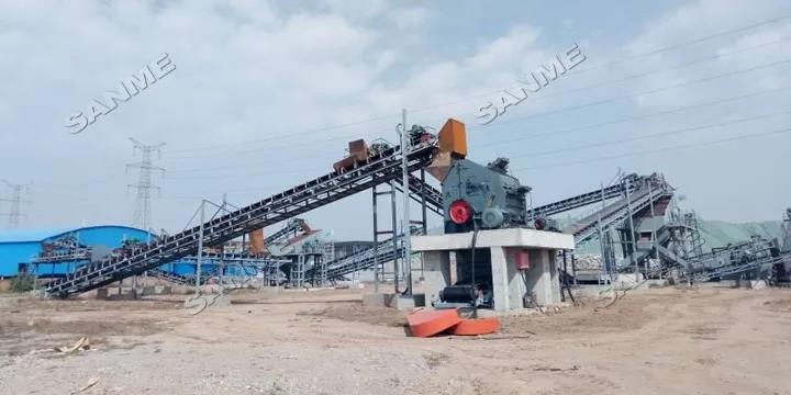 本项目由山美子公司提供完整的技术解决方案和全套建筑固废处理装备,设计产量为350-400吨/小时,采用“颚破+反击”两级破碎筛分工艺和“磁选+风选”两级分选流程。