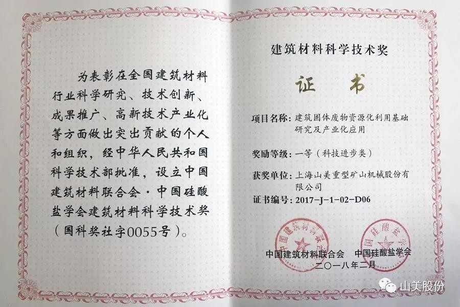中城建恒远贵州安顺建筑固废绿色循环再利用生产线,年处理量为300万吨,是上海山美股份参与和建成的国家级项目,引起了国家发改委、住建部,贵州省领导高度关注。该项目处理后的建筑垃圾产品用于制造新型环保墙体材料,不但解决了安全与节能兼顾的问题,也在产品的安全、节能、环保性能方面找到了一条产业化的新路子。