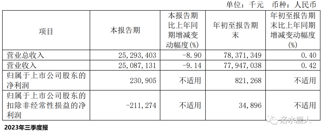 2023 年前三季度,公司营收 783.71 亿(+0.40%);归母净利润 8.21 亿,上年同期亏损。
