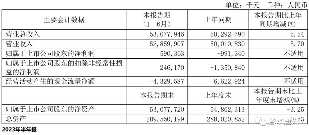 2023 年上半年,公司营收 530.78 亿(+5.54%);归母净利润 5.90 亿,上年同期亏损 9.91 亿。