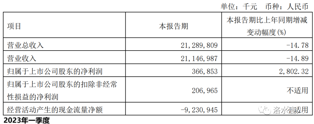 2023 年一季度,公司营收 212.90 亿(-14.78%);归母净利润 3.67 亿(+2802.32%)。