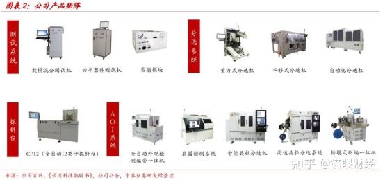 公司产品包括测试机、分选机、探针台、AOI设备和自动化设备。