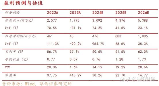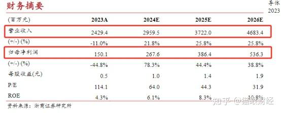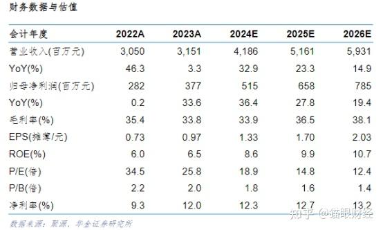 华西证券,预计2024-2026年营业收入分别为35.00、47.40和60.34亿元,同比+40%、+35%和+27%,2024-2026年归母净利润分别为10.09、13.33和16.99亿元,同比+39%、+32%和+27%。