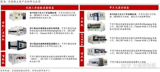 产品主要包括光刻工序涂胶显影设备、单片式湿法设备。公司涂胶显影设备成功打破国外厂商垄断并填补国内空白,在后道先进封装和LED芯片制造等环节已实现国产替代。