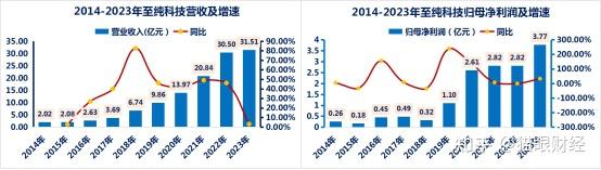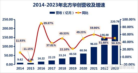 在经营业绩上保持高速增长的趋势。公司营收从2014年的9.62亿元增长到2023年的220.79亿元,10年间翻了近22.95倍,GAGR36.80%。