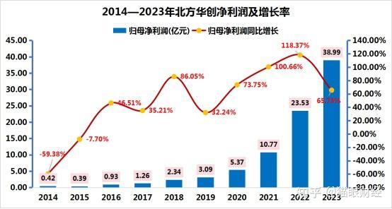 净利润方面,10年来归母净利润从2014年的0.42亿元到2023年的38.99亿元,10年增长超90倍,达92倍,年复合增长57.32%。