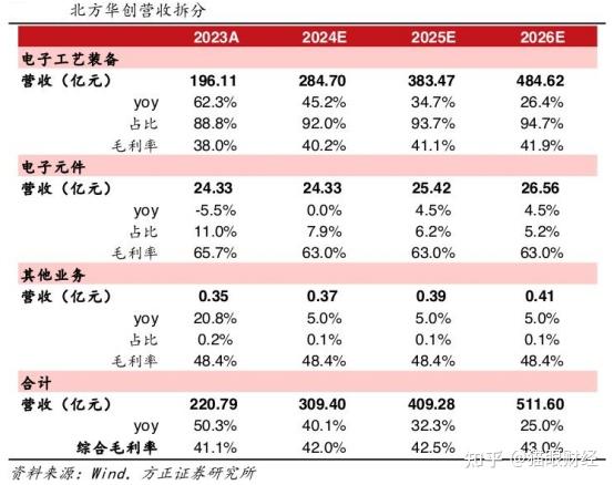 随着国产替代的持续推荐和国家大基金三期的成立,半导体设备将优先受益,作为国内领先的半导体平台设备企业,将显著受益国产替代和大基金三期所带来的业绩提升。方正证券预计,公司在2024/2025/2026年分别实现营业收入309.40/409.28/511.60亿元,同比增长40.1%/32.3%/25.0%,实现归母净利润57.31/78.97/98.45亿元,同比增长47.0%/37.8%/24.7%。