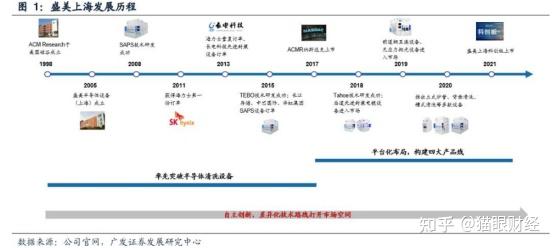 2015年公司开始布局半导体湿法工艺设备领域。2019年,并购波汇科技成立了光电子事业部,补充了公司在光电子元器件领域的能力,同年公司并购了珐成浩鑫,成立了生物技术事业部。公司深耕电子、生物和能源领域20年,形成了工艺、设备、材料三位一体的发展战略。