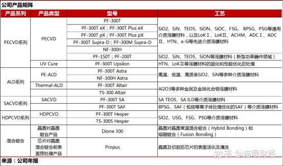 公司形成了以PECVD(等离子体增强化学气相沉积)、ALD(原子层沉积)、SACVD(次常压化学气相沉积)及HDPCVD(高密度等离子体化学气相沉积)为主的薄膜设备系列产品。