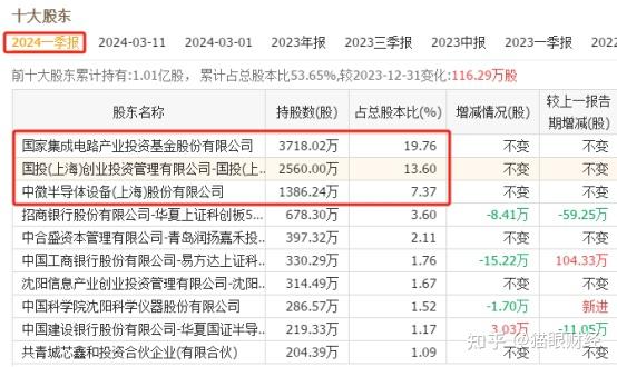 公司股权较为分散,最大股东为国资股东,占比达33.36%。截止2024年一季度,国家集成电路产业投资基金股份有限公司是公司的第一大股东,占股19.76%;第二大股东为国投(上海)创业投资管理有限公司,占股比例为13.60%,为国家开发集团的孙公司,国资股占比达33.36%;中微公司是其第三大股东,持有公司7.37%股份,其董事长尹志尧先生为公司董事之一。