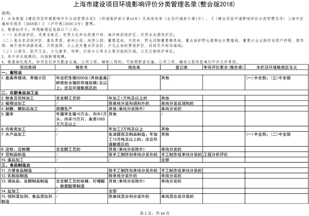 2017年9月1日,环保部发布实施了新版《建设项目环境影响评价分类管理名录》,2018年4月28日,又发布实施了名录修改单。2018年5月5日,上海市环保局发布了《建设项目环境影响评价分类管理名录上海市实施细化规定(2018版)》(简称“补充名录”)。以上三个名录综合起来,才是本市现行有效的环境影响评价分类管理名录。