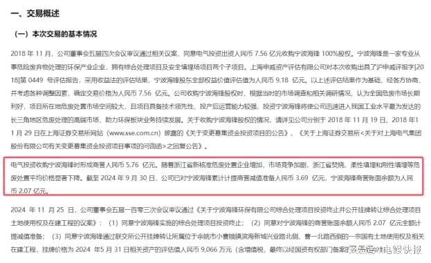 宁波海锋的情况则更为复杂。该公司主要从事危险废弃物处理业务,但由于市场环境和政策的变化,其未来盈利能力面临巨大不确定性。自2018年被上海电气收购以来,宁波海锋的商誉账面余额已累计计提减值准备3.69亿元,剩余账面余额为2.07亿元。鉴于此,上海电气决定对宁波海锋全额计提减值准备,并终止其综合处理项目的投资。同时,宁波海锋拥有的位于余姚市小曹娥镇的一宗国有土地使用权及相关在建工程也将通过联交所公开挂牌转让,挂牌价格为9066万元。