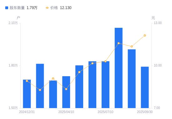 近一年(2024年9月30日至2025年9月30日),华新环保A股股东户数从2.02万户,减低至1.79万户,降幅11.15%,区间股价上涨45.10%。
