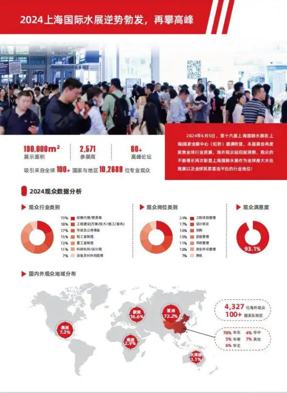 展会的影响力不仅体现在参展商的数量与质量上,更体现在其广泛的观众覆盖。预计将有来自海内外的 100,000名专业观众慕名而来,他们来自市政水务、工业用水、民用净水、环保工程等诸多领域,带着明确的采购需求、合作意向以及对行业前沿技术的强烈渴望。这些专业观众为参展商搭建起了通往市场的桥梁,促进了水行业上下游企业之间的深度合作与交流。展会还将吸引众多国内外行业媒体的聚焦,通过媒体的传播,展会的影响力将辐射至全球水行业,成为推动水行业技术交流与产业发展的重要力量。
