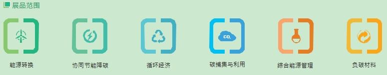展品范围:能源转换、协同节能降碳、循环经济、碳捕集与利用、综合能源管理、负碳材料