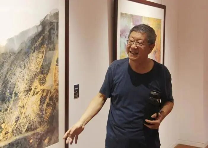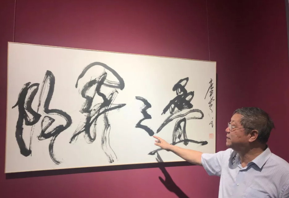 唐双宁在展示自己创作的书法作品(图据当代金融家杂志公众号)