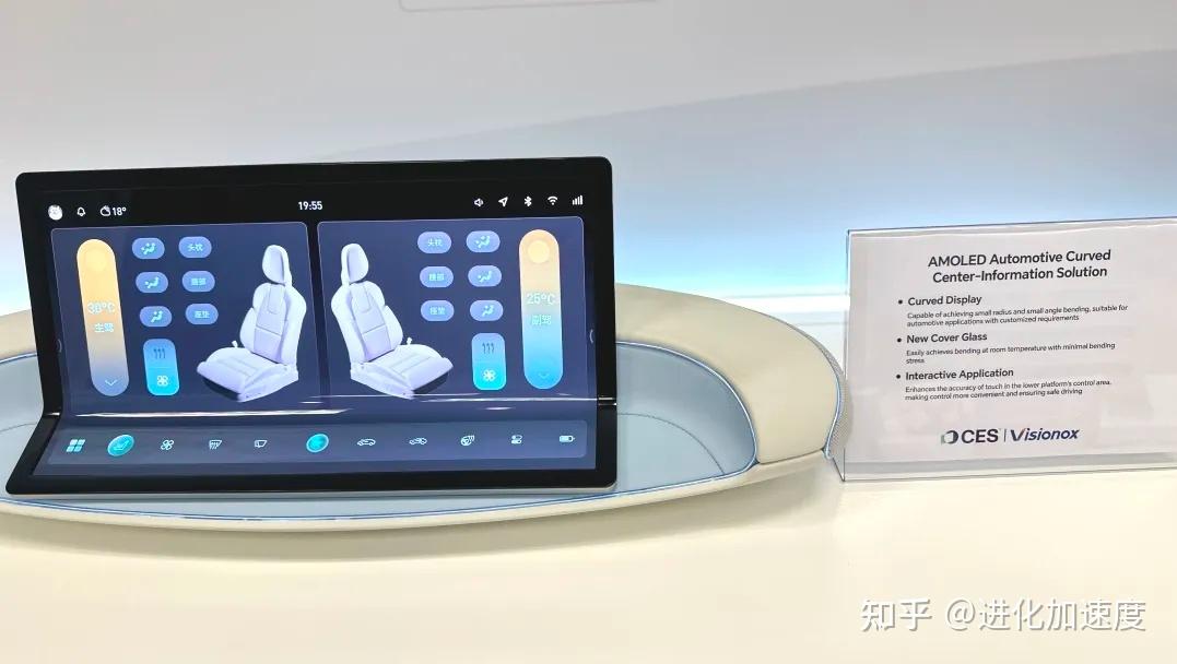 C型固曲中控车载显示解决方案首次在海外展示,该展品通过柔性屏实现小半径小角度车载曲面显示,让下部平台触控区域点击更精准,控制更便利,解决了行车过程中操控中台显示点击不精准痛点,为安全行驶保驾护航。