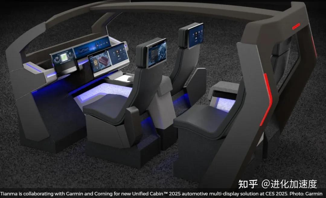 Unified Cabin 2025是Garmin为全球汽车制造商提供的最新汽车信息娱乐和电子解决方案。作为CES 2025创新奖的获奖者,Unified Cabin的最新版本为所有四个座位提供了完整的车载信息娱乐体验,所有这些都来自单个Garmin控制模块。新功能包括生成式人工智能主题化、儿童在场检测(CPD)和分区音频和视频。统一舱总共包含六个天马显示器。前仪表板上有一个15.6英寸的组合显示屏和一个27英寸的中央仪表盘显示屏,两者都粘合在一块玻璃上。