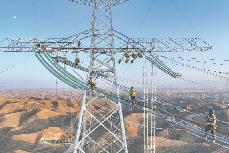 截至目前,新疆超高压电网共有750千伏变电站31座,线路92条,形成“内供五环网、外送四通道”的主网架格局,助力新疆地区“沙戈荒”大型风电光伏基地的大规模开发利用和大范围配置消纳,为我国中东部地区发展提供有力的电力支撑。